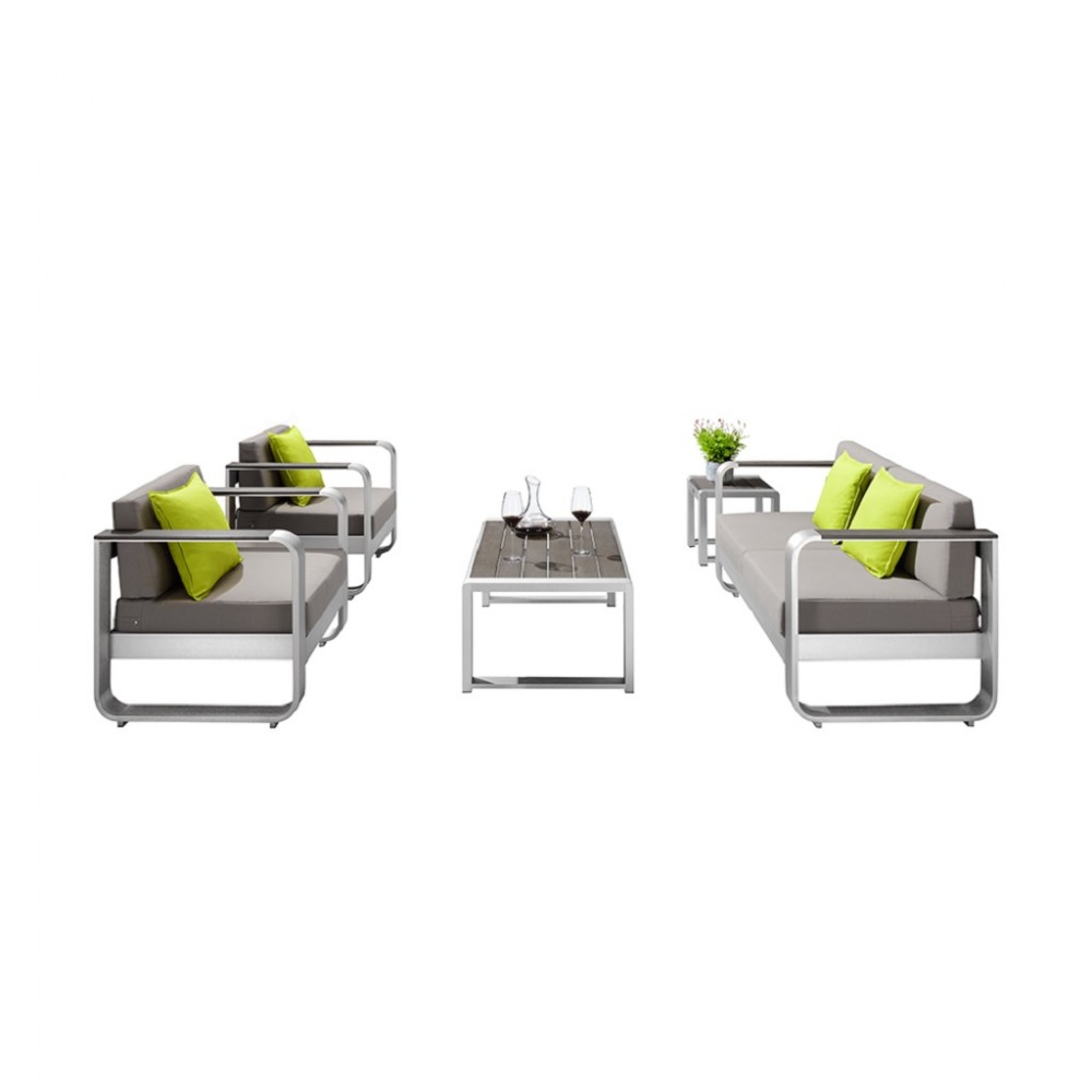 Удобный и практичный комплект в минималистичном стиле для вашей террасы. Выполнен из брашированного алюминия — материала, который легко переносит перепады температур, неприхотлив в уходе и отличается особой легкостью. Идеален для долгих летних вечеров, проведенных на свежем воздухе за бокалом вина или чашкой горячего чая.